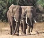 Should these animals wander out of the National Parks and into neighbouring hunting areas, they may – perfectly legitimately, as things stand – be shot by trophy hunters. This has already happened in more than one case. The individual at left hasn’t got particularly heavy tusks, so he might get away with it. However, the tusks on at least one of those at right are getting into the trophy ‘danger zone’.