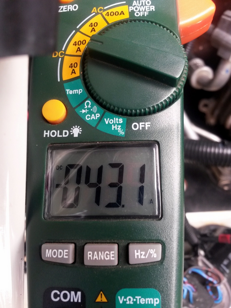 As you can see there wasn’t much loss over the cable , and the alternator didn’t have an excessive draw , as was speculated previously