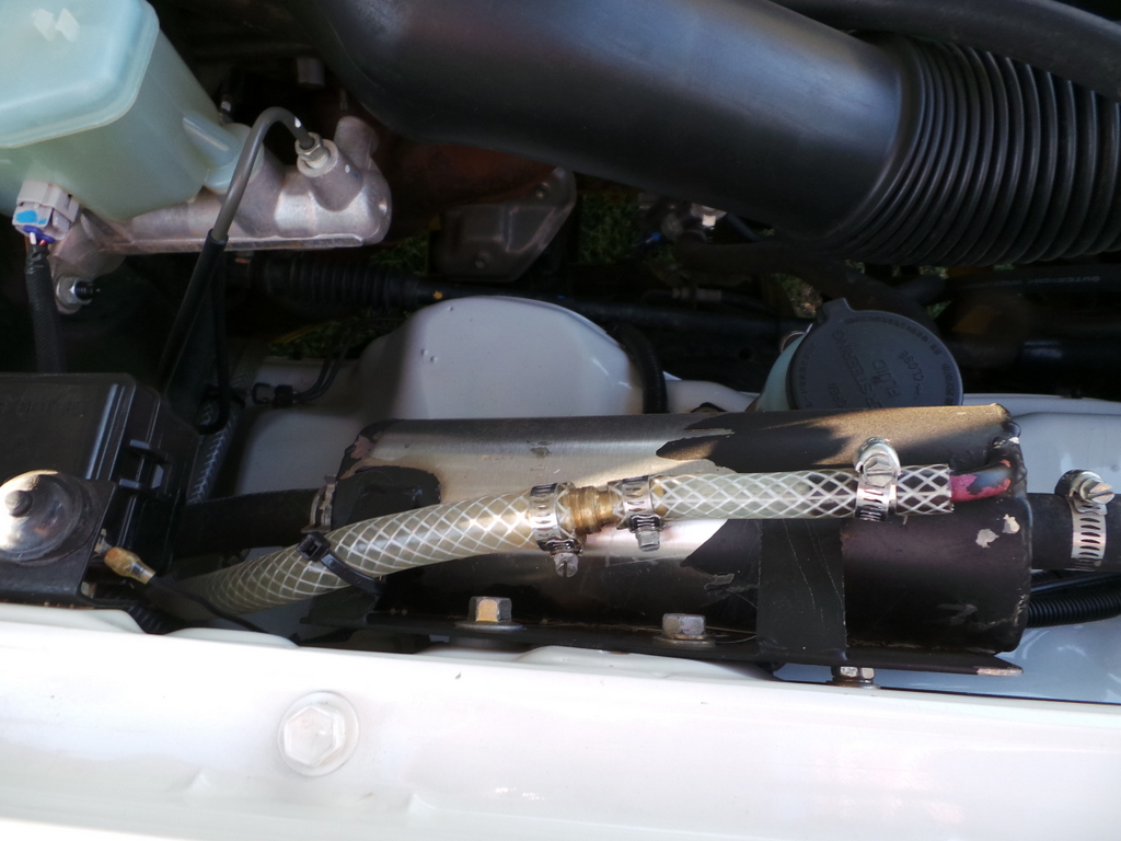 Here it is plumbed into the heater box. This allows me to control the flow of water through the exchanger by adjusting the heater slider inside the car . This allows me to control the heat of the water coming out the shower , and does away with the need for separate hot and cold taps .