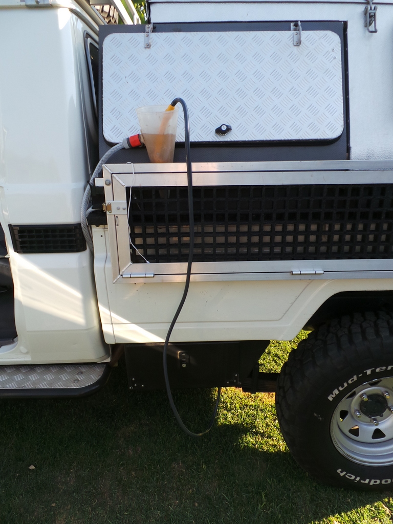 I started with a 55 l tank which is mounted under the car  . I specifically wanted a tank that was separate from the drinking water tanks , as this allows me to top it up with grey water
