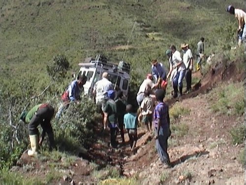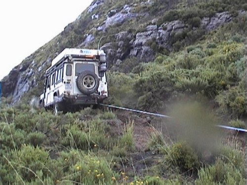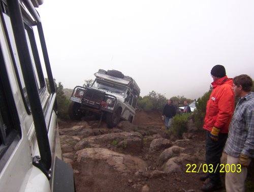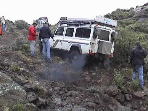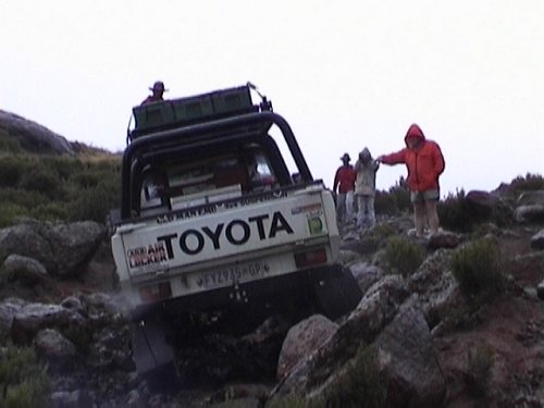 We headed off down the pass , and where doing quite well (about 7km in 6 hours ) when we reached a point on the pass that was totally no go . Koos decided to try find an alternative route , but only ended up wrecking his transfer case . Read all about it here .
