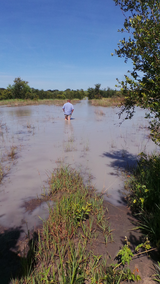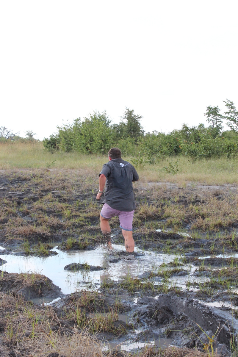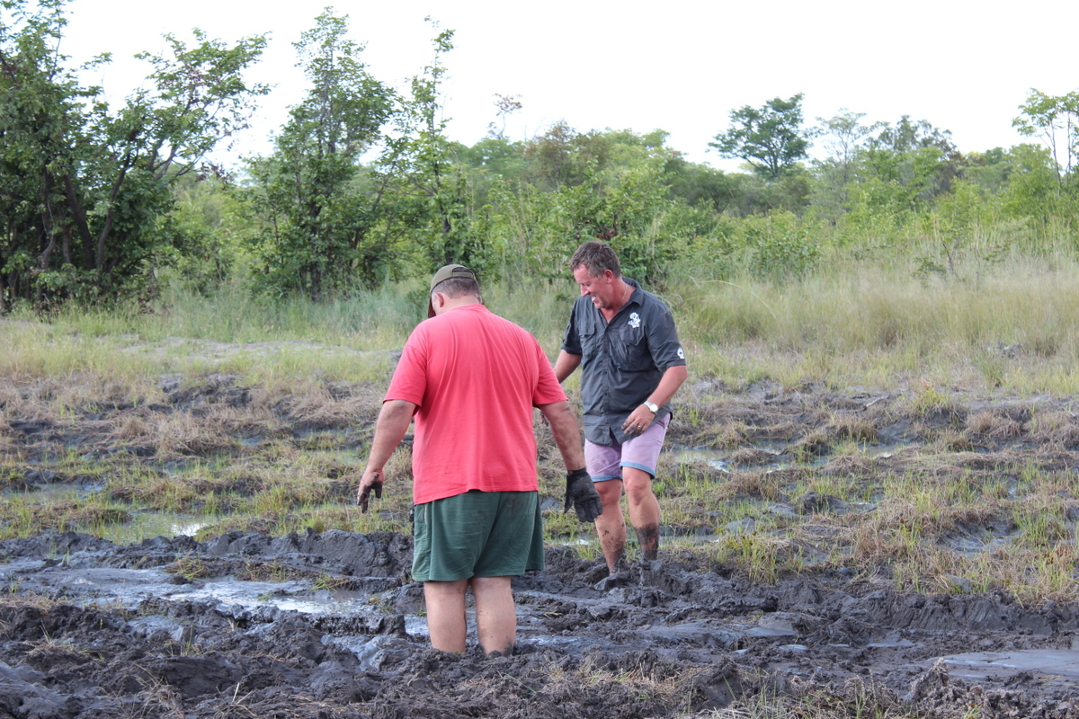 We started driving at about 8.30 , destination Pandametenga for fuel and then onward to Hwange . The going was quite easy , but we did come across one interesting obstacle , which I suspect was some sort of drainage system for the farmland in the area . As the road was still our infamous cotton soil , we made a slight detour , with everybody making it with no issues .