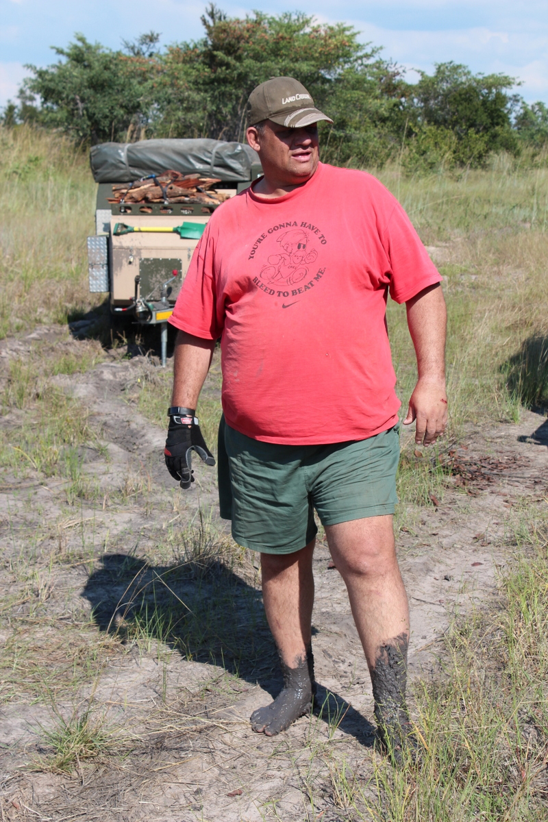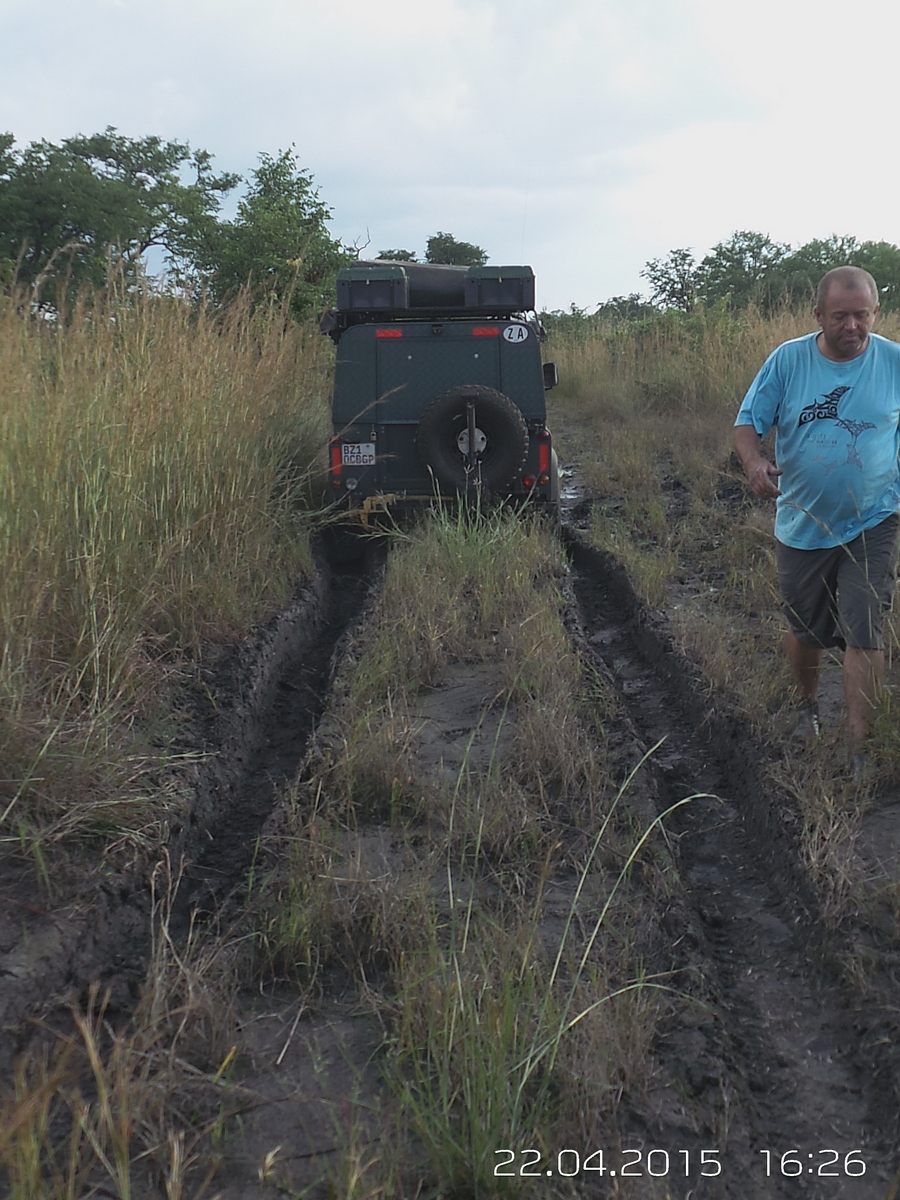One thing I learnt , is that next time I’ll check that the initiate has recovery points on his vehicle. Because we couldn’t get him out forwards , we first had to unhitch the trailer and take it out sideways . That little exercise took about an hour and a half , but after that the car came out backwards quite easily .