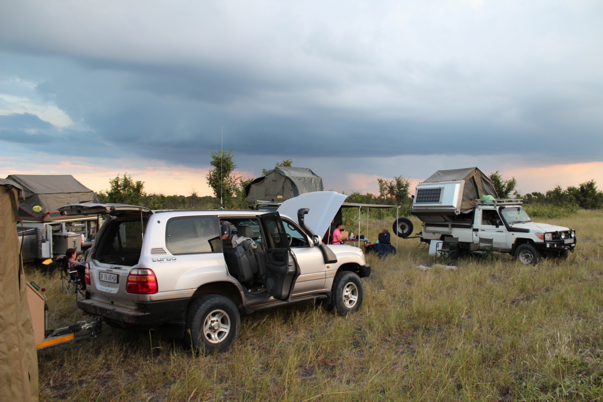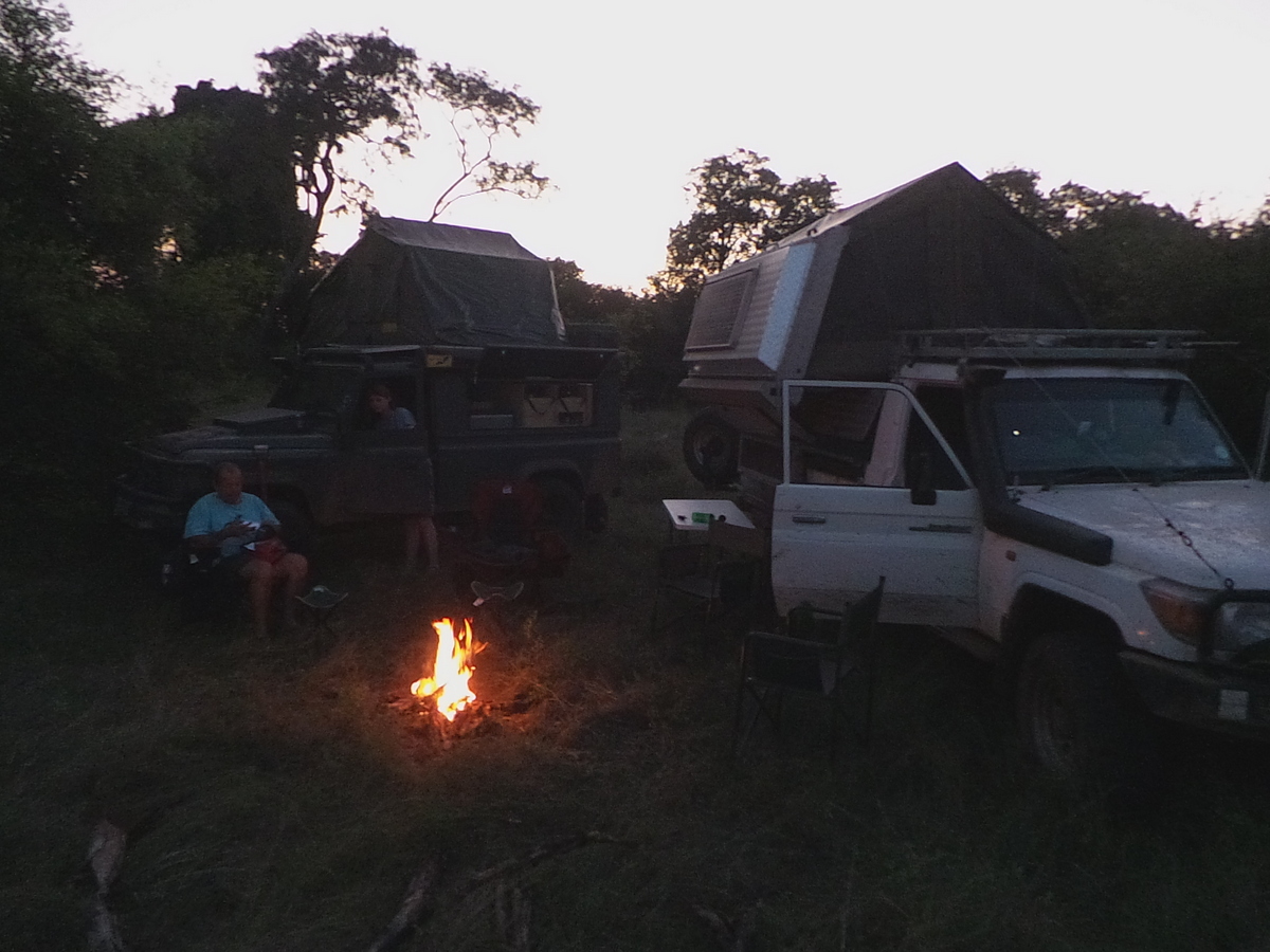 We pretty much had the whole campsite to ourselves , until a couple arrived in a Britz Rental . They came over and asked us to help them open their rooftop tent. Turns out they had flown into Vic Falls that morning from the UK that morning , and were pretty much given the keys and a map, and hardly shown anything about the vehicle. As they had a lot of questions , and because we could could see they were pretty much out of their depth , we invited them around for supper.