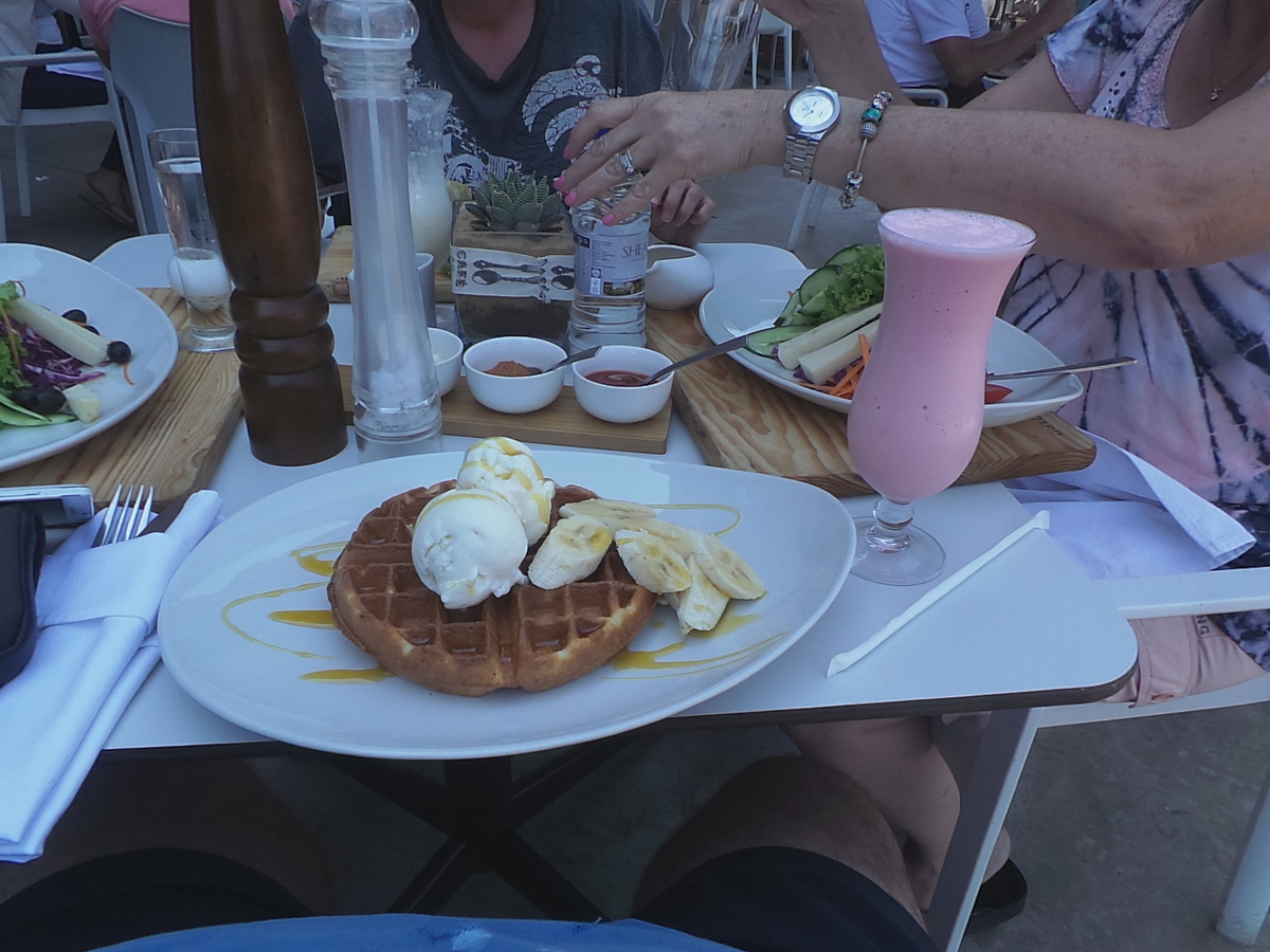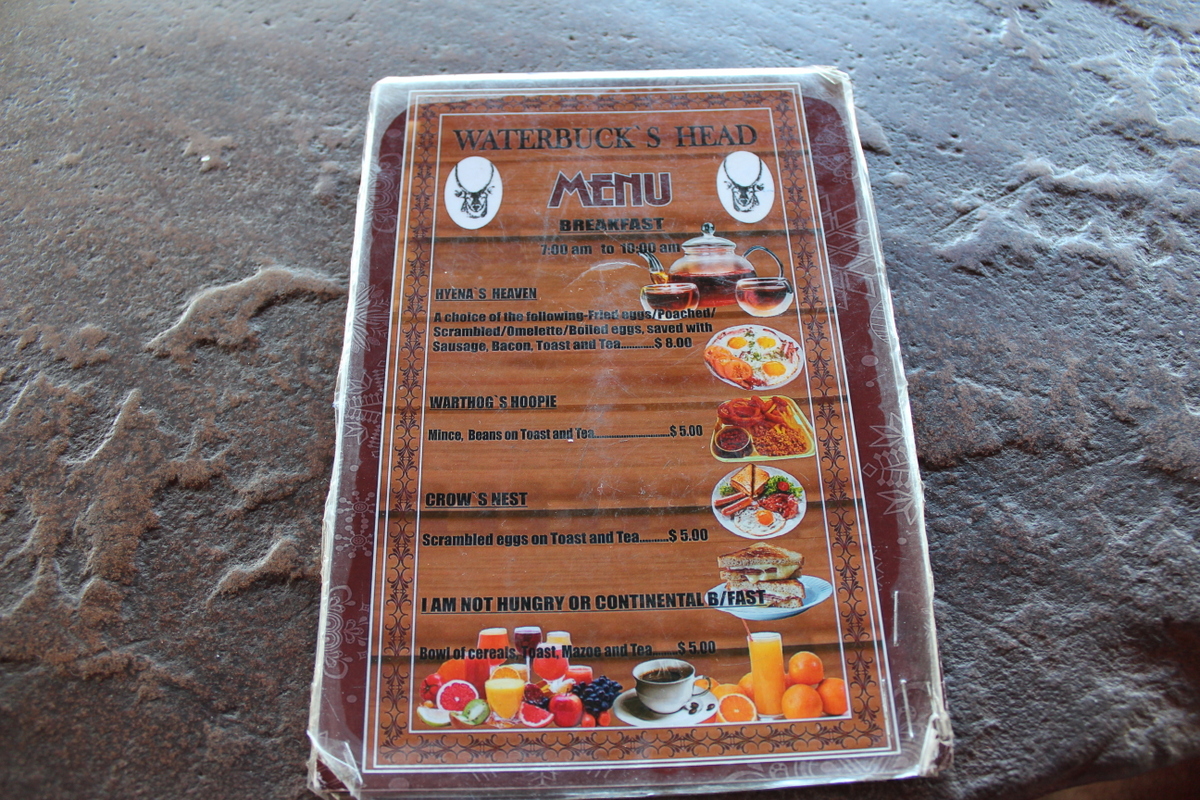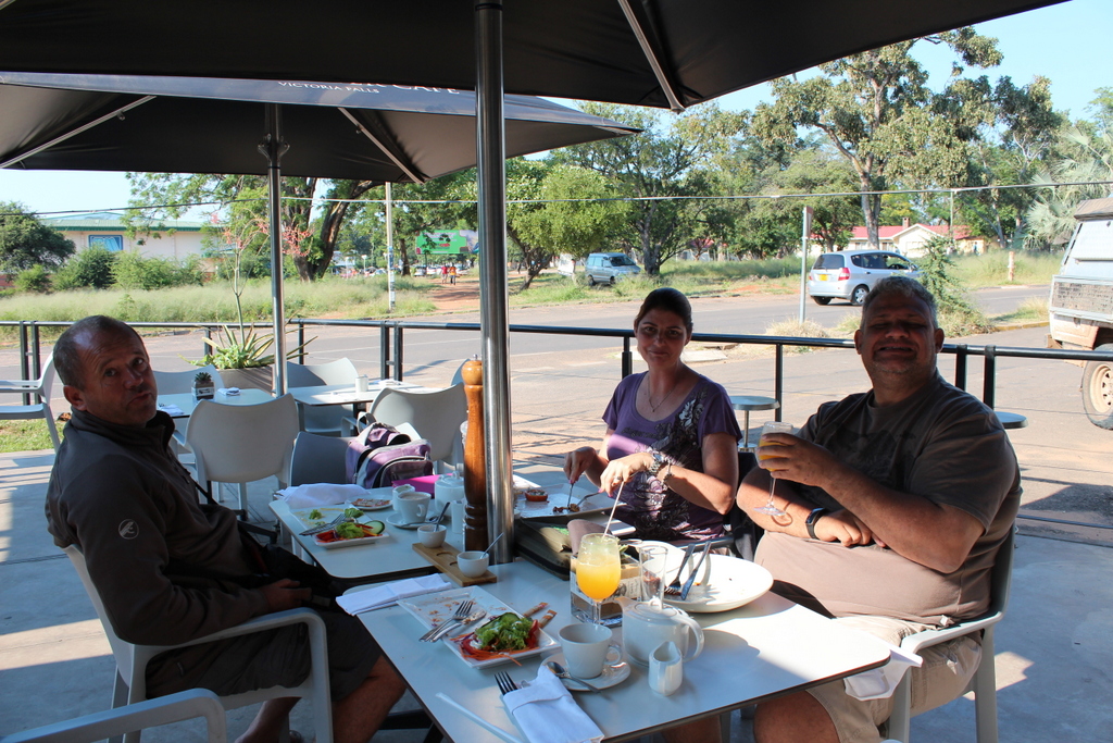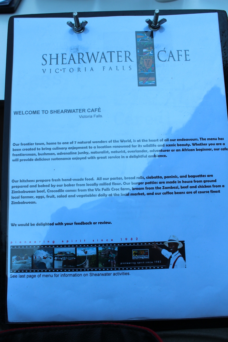 We decided to forgo the usual touristy stuff at Vic Falls ,and after collecting Phillip’s tyre , we headed for lunch at the newly opened Shearwater Café . (I told you this was becoming a culinary expedition .