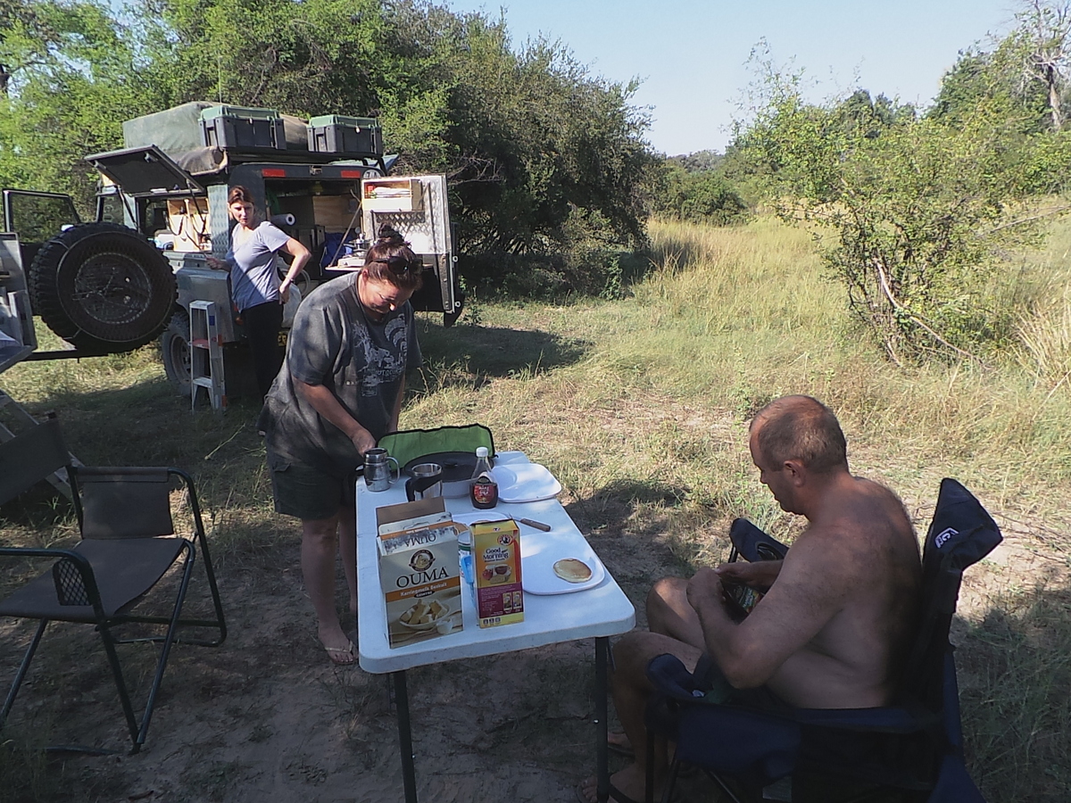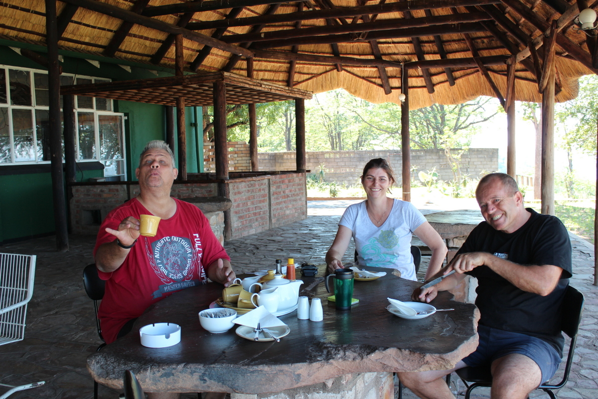 After another awesome sunrise , we decided to havebreakfast where we were , and then later head into Vic Falls to collect Phillip’s tyre