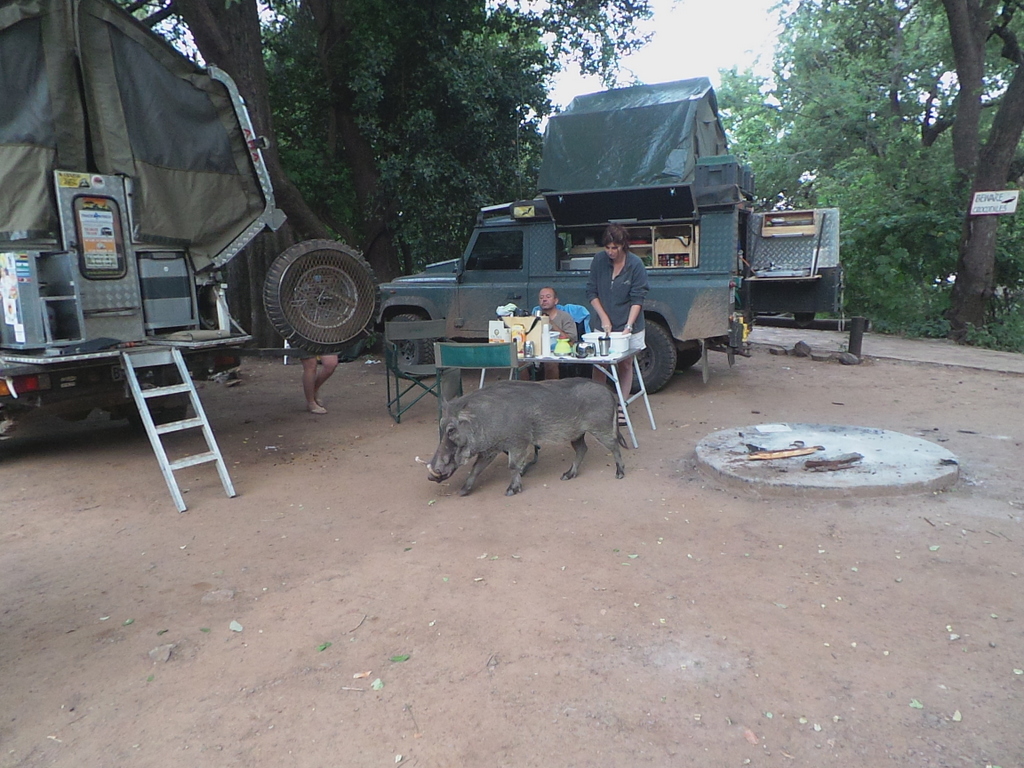 We were visited by the resident warthogs while packing up. The old male is now really getting on , and seems to be at least partially blind. The younger ones tend to shepherd him around with grunts and nudges. He hasn’t lost his love of rusks though , and as usual made an absolute pig of himself (groan – sorry)