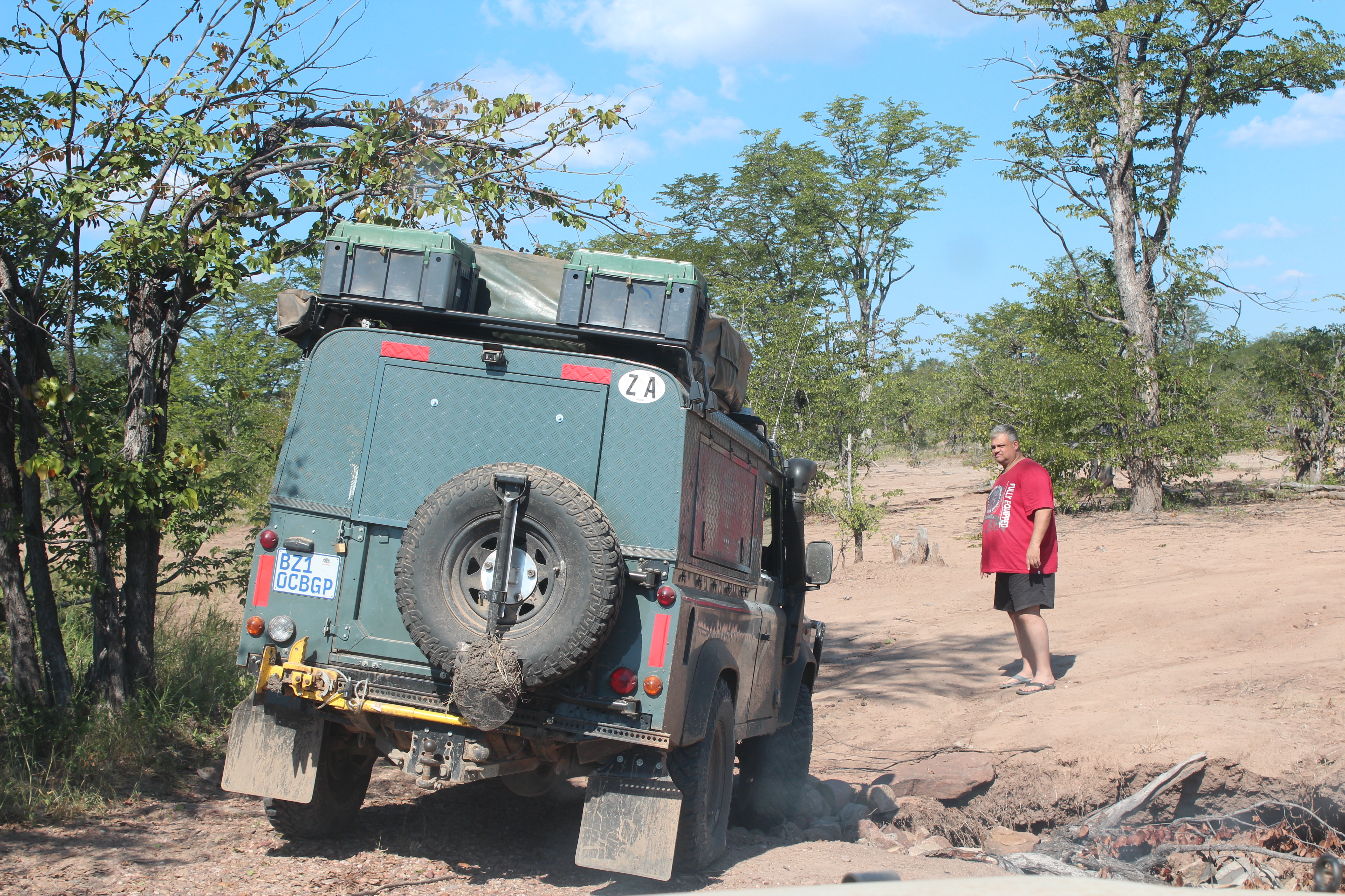 After refueling in Pandamatenga , we had an easy border crossing into Zimbabwe . The only issue was that they now capture your details directly onto a PC on the Zim side , which is quite a slow process , taking about 10 min per person . I had also forgotten my radio on , and as luck would have it , someone called me just as the policeman on duty was checking my vehicle. As I didn’t have a Zim license , I did a bit of smooth talking (no money , just talking) and he let me off with a warning . We headed to Robin’s Camp in Hwange to see which campsites were available . Unfortunately all the private camps like Deteema . Masuma and Shumba were taking , so we had to settle for Mandavu Dam , but at least we had it to ourselves.