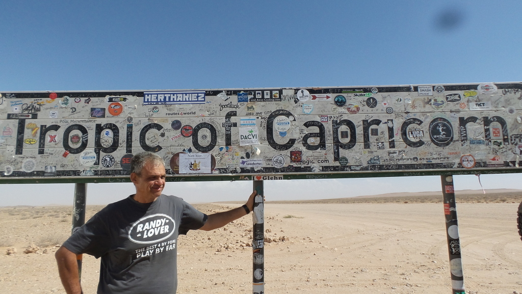 After a brief stop at the Tropic of Capricorn for a photo opportunity , we headed on to Solitaire Desert Farm , arriving at about 4.30 PM .
