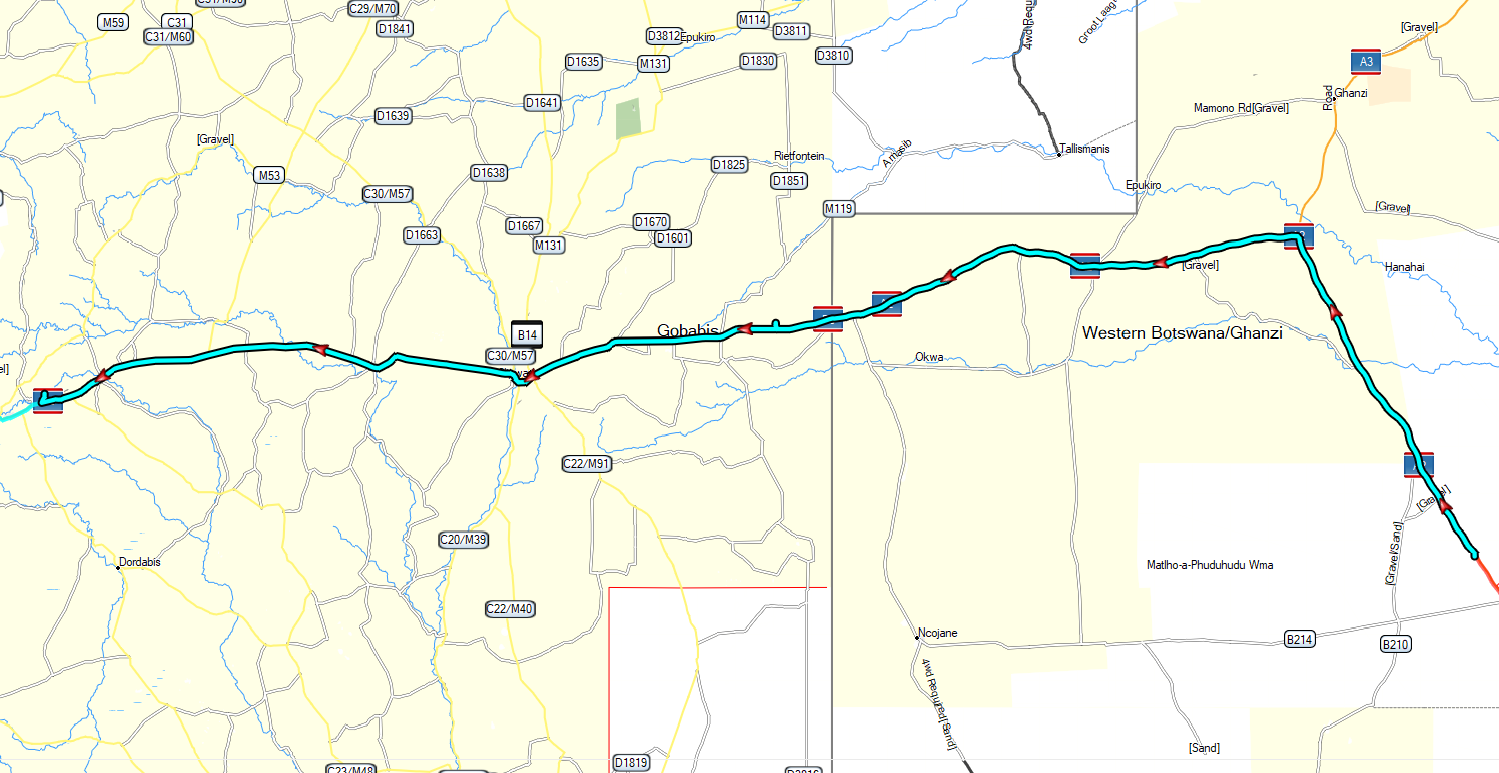 We had a very quick and easy crossing at the border and stopped just after the Botswana side for breakfast at about 11 AM .