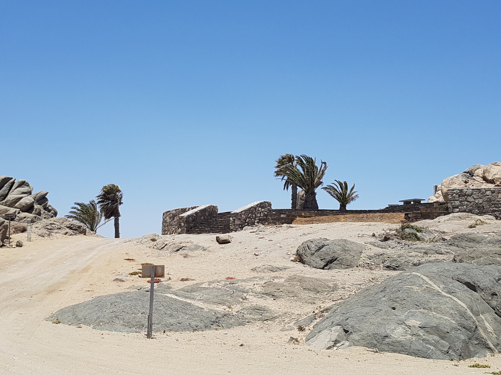 After a uneventful drive , with a brief stop at the lookout for the feral horses , we arrived in Luderitz and went through to take a look at Shark Island campsite. It was way windier than the previous time I had been there , and there was not a single person booked in at the campsite.