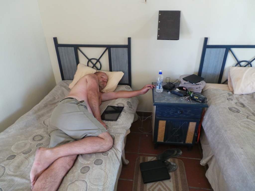 We were up bright and early with Phillip even doing the dishes. We were expecting the guys from about 8 AM , and by 10.30 we were beginning to get a bit worried. Phillip tried Raymond on his cellphone a few times , but it went straight to voice mail . This was probably good news , as we knew that past Twee Rivieren there was no reception , or had something happened to them , as they were running quite late.