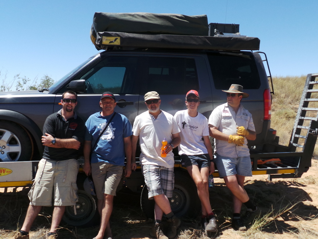 At about 11.50 I was on the sat phone to Anthony to see if he had heard anything , when the most wonderful sight appeared. It was the Tuffstuff Iveco with trailer attached. Inside were Raymond and Andre from Tuffstuff , and Herman and Cameron from Angel Offroad. Herman was the designated driver , and even though the vehicle was new to him , he learnt it very quickly. More of his prowess to follow .