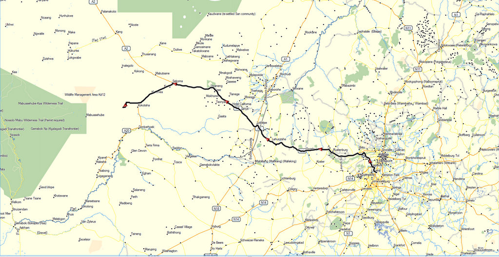 We then headed down the A2 , stopping for lunch at Nandos in Jwaneng.