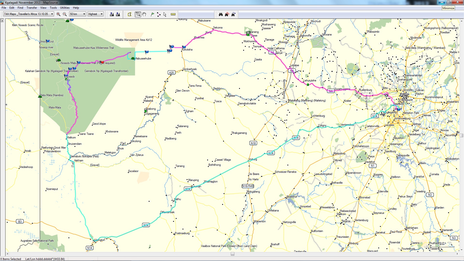 We had a fairly late start , as we only had about 80 km to do to get to Masomane Pan
