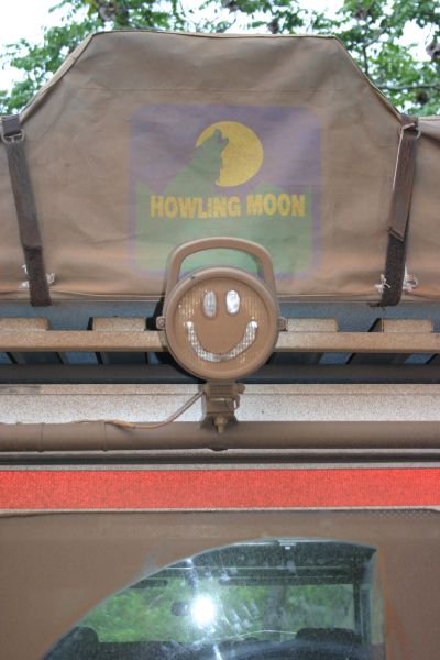 which took us across the river. The whole ferry experience was quite exciting for Heine and myself, being our virgin ferry voyage. I was like a kid and mounted myself upon the landy’s roof, comfortably between the jerries and loved the ride. Guy and Catherine had seen the ferry sink on a previous trip when wanting to cross and our poor first-timer safari girl from Germany stayed inside the car and practiced some heavy breathing exercises into what looked like a peak cap. Once on solid ground we headed for Gorongosa National Park and managed to travel just over 600 km’s for the day. The camping fees at the park was R120 per person, which compared to Fat Monkeys at R6 per person (U$1) was rather pricey. The facilities were barely OK. It was already dark and both the German lasses weren’t feeling well so we decided to stay the night. A braai it was and millions of tiny black stink bugs sent us to bed early.