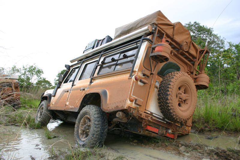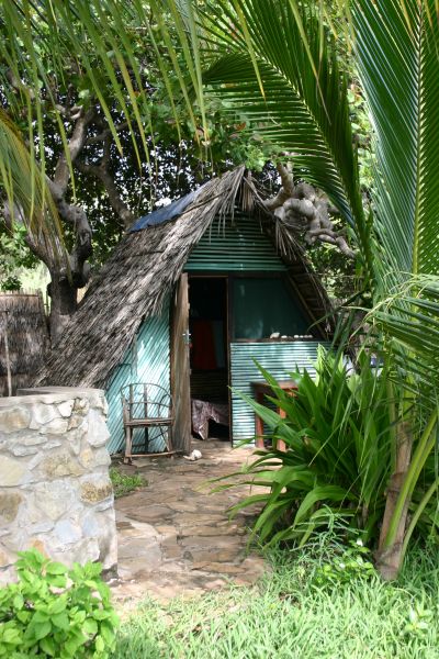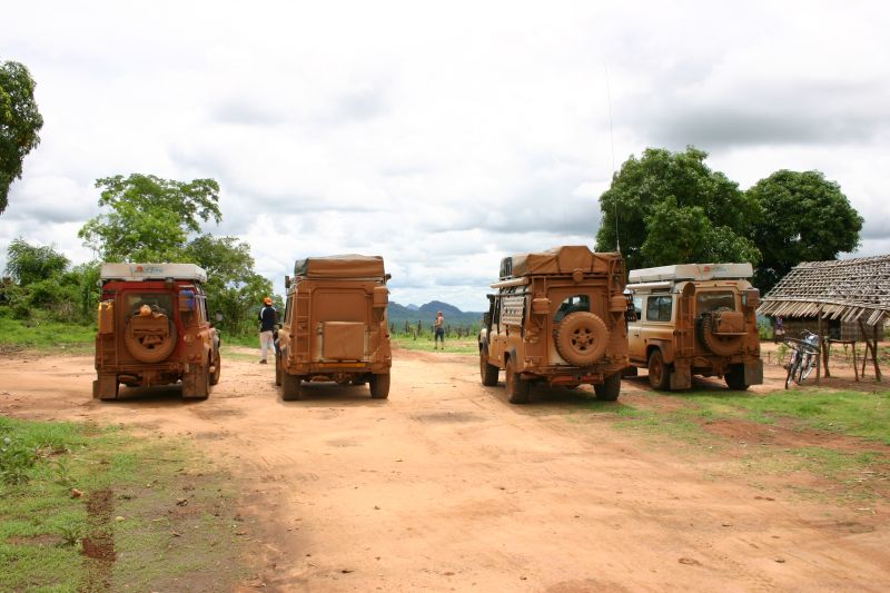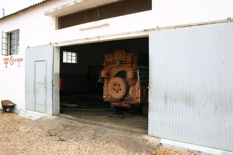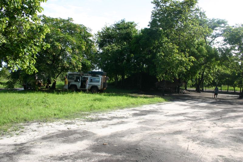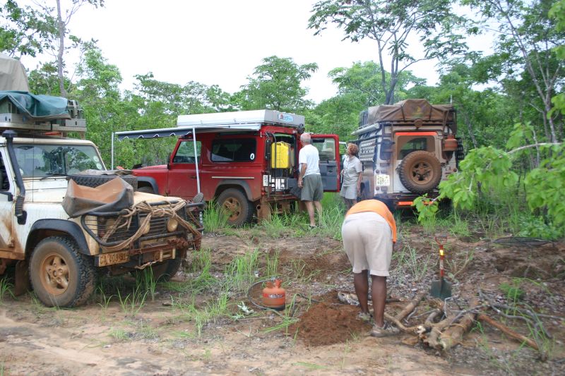 in Pemba. Guy need some help with his landy’s brakes and Heine needed a clanking noise resolved. Fortunately for Guy, Land Rover soldered the left rear wheel brake line and he was all sorted. Unfortunately for Heine, he spent the entire day there. During a two hour siesta and mechanics running across the road to a Mitsubishi dealer to use their press, the bushes on a shock absorber and a radius arm were replaced. The damage to the wallet was R1200. Meanwhile back at Russell’s, washing became a difficult chore with no running water available. The only source of water came from a well. So unless you were strong enough to pull a 15 litre water bucket up from a 10 metre drop and able to carry the thing, then only, was washing possible. The washing process was then interrupted by a massive cloud burst, which really helped on cooling down a sweltering day but did little yet again for the washing chore. Heine got us a log cabin