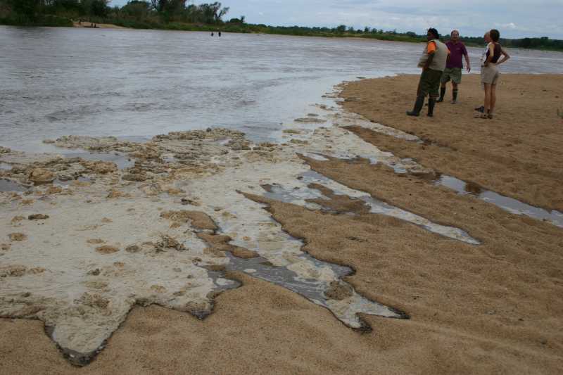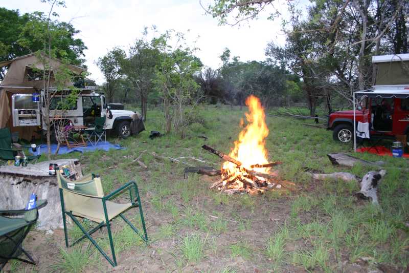 we jumped out to go and do the gumboot test. On closer inspection we noticed how the river was pushing up at a remarkable rate of approximately 10cm every 5 minutes. We ummed and aawed and then noticed a couple of locals heading our way from across the river. They got up to chest height in water and the decision was made not to go across. We then decide to head for Mapae before nightfall as we were worried that the river would be un crossable by the next morning. As it turned out the road to Mapae was not the average 80km’s/hour kind of road and the sun was already very low so we quickly found a bush camp spot for our first night. After 9 hours and 640km’s, aching knees and stiff joints were soon forgotten once the beers started flowing. A braai and left-over padkos was on the menu followed by the early sounds of zipping tents.