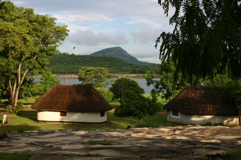 that was probably piled higher than the dilapidated thing was wide. From beds, bicycles to twenty litre water containers ,it was all up there. The thing that freaked us the most was the angle of the pile. The bus with all its passengers was leaning at an estimated guess of about 30 degrees. One large pothole would send it tipping. We had a lot of rain during the day with some patches of extreme cloud bursts, causing water to stream in through the top of the doors and puddling at our feet. Great fun – tar roads with an off-road experience and some torrential rains. After a family gathering at the Shell Gasolina, where we fueled up, it was decided to go and find out what the campsite at The Chicamba Dam