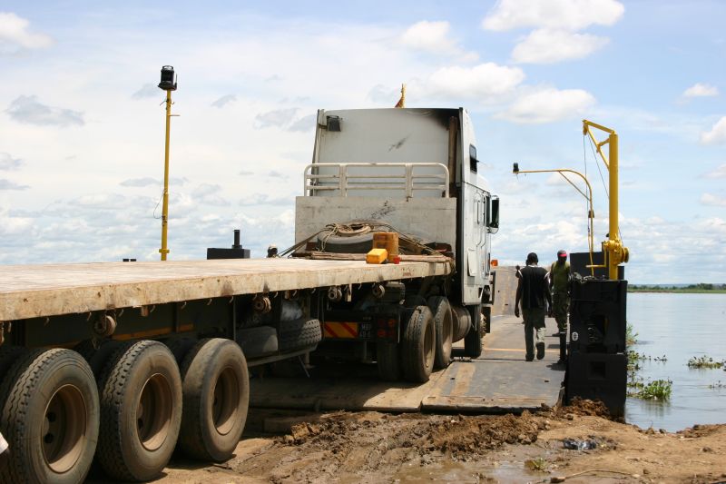 We departed from Mapari at 08h00, heading south we passed through the towns of Mocuba and Nicuadala. By noon we reached Caia where we crossed the great Zambezi. The four landies and a couple of other large trucks were driven onto a ferry,