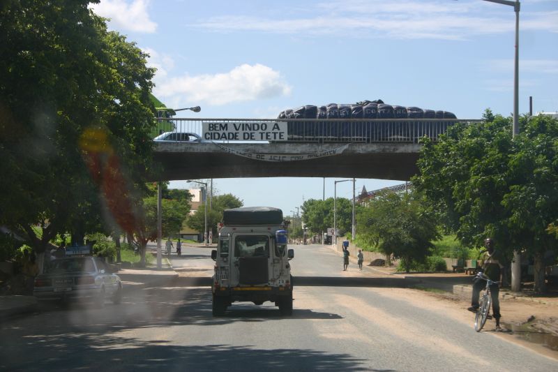 08h00 with tar roads ahead we were heading for Tete. Part of the roads were pretty much the same as the day before, some perfectly smooth whilst others potholed like a disease. We were passing through some unnamed village where Sello was caught speeding at 61km/h in 60km/h zone and was fined one million Meticais (about R330). Mozambique has an abundance of fruit. Bananas, mangos, pineapples and coconuts are very cheap and available alongside most roads. We decided to continue past Tete